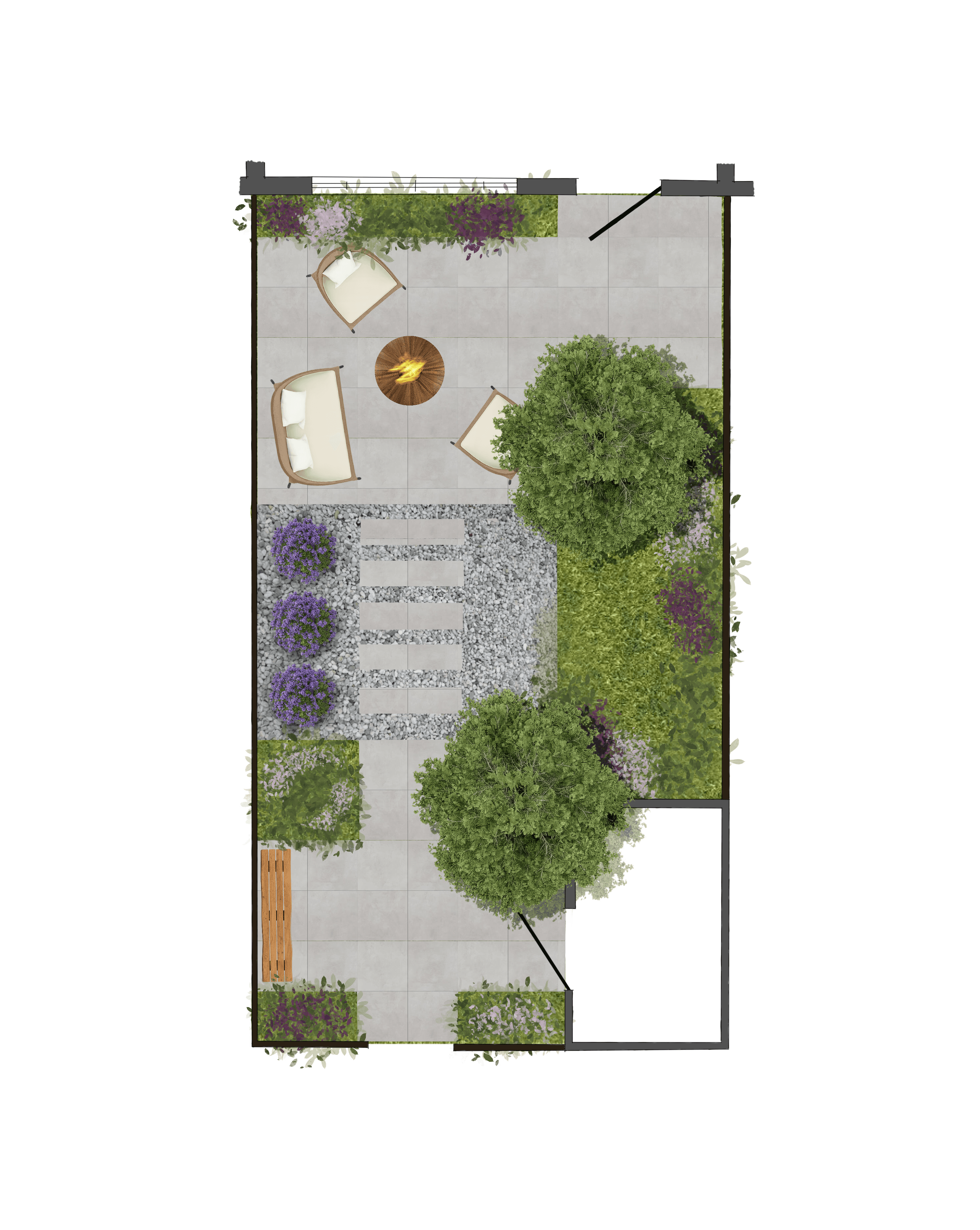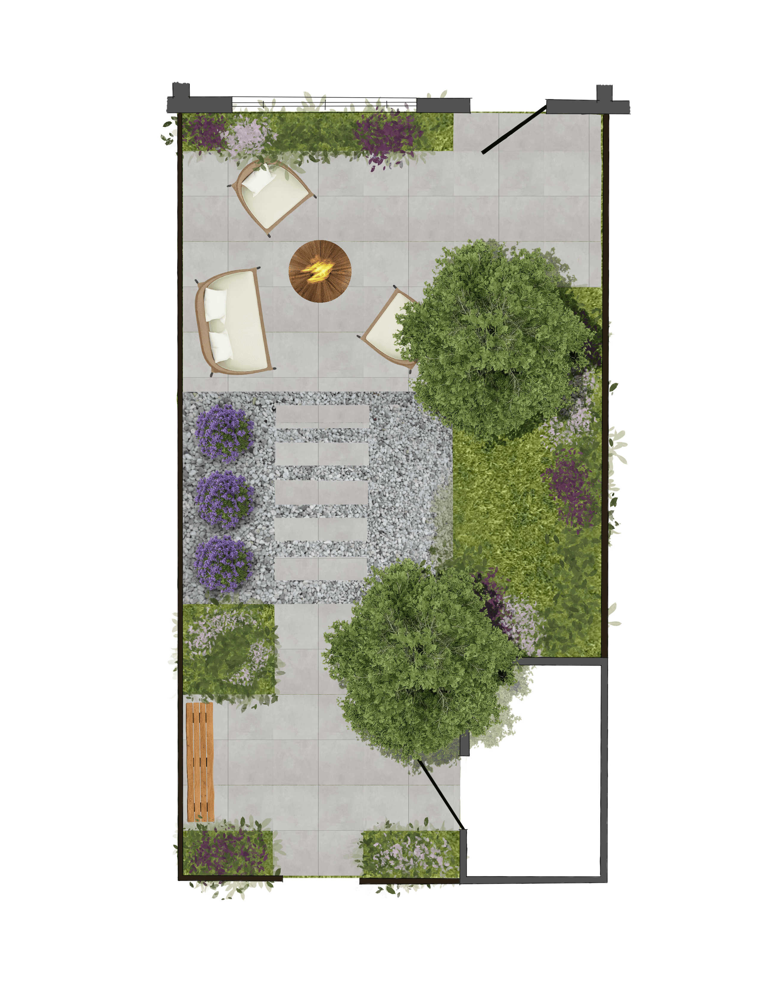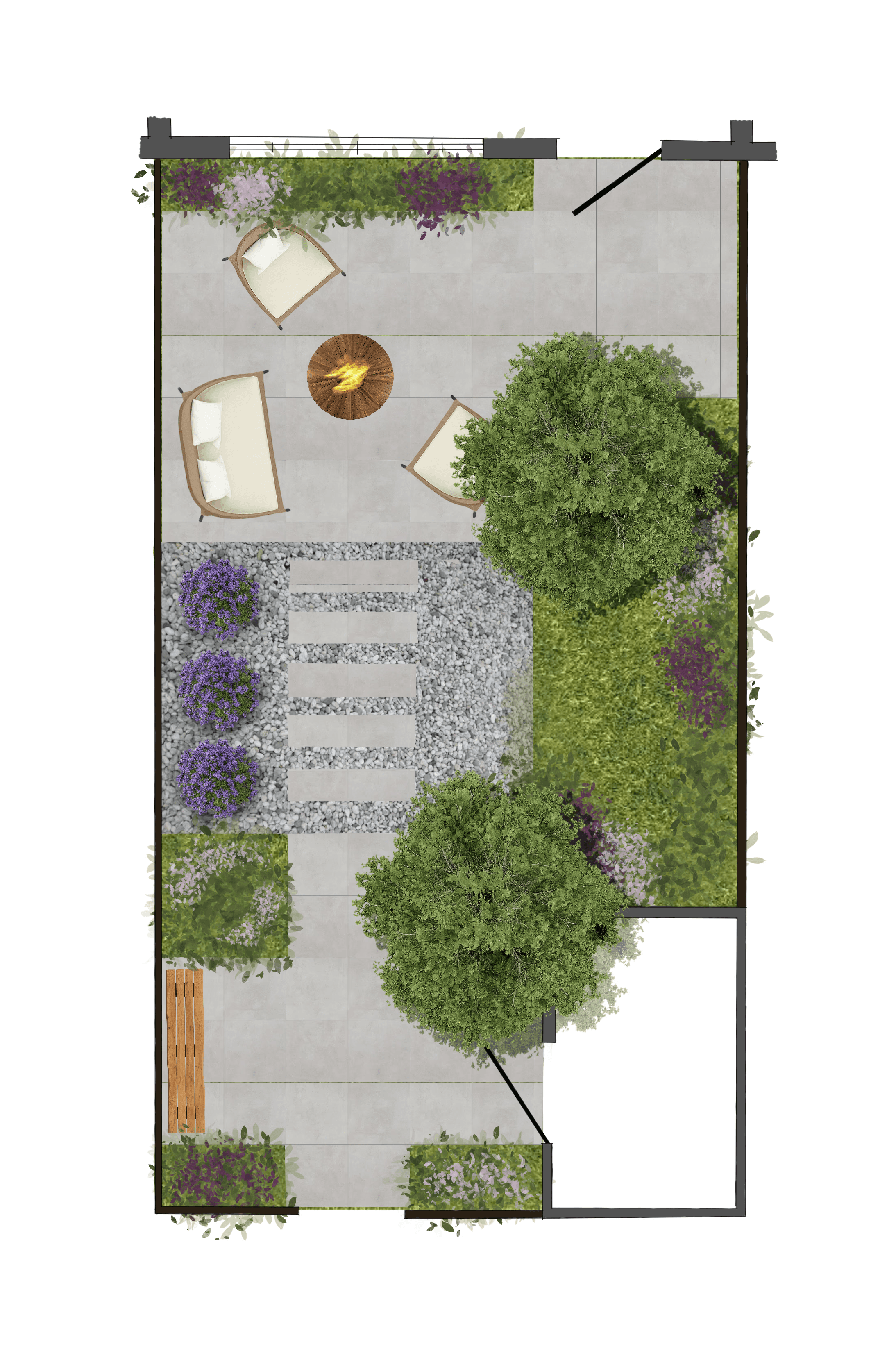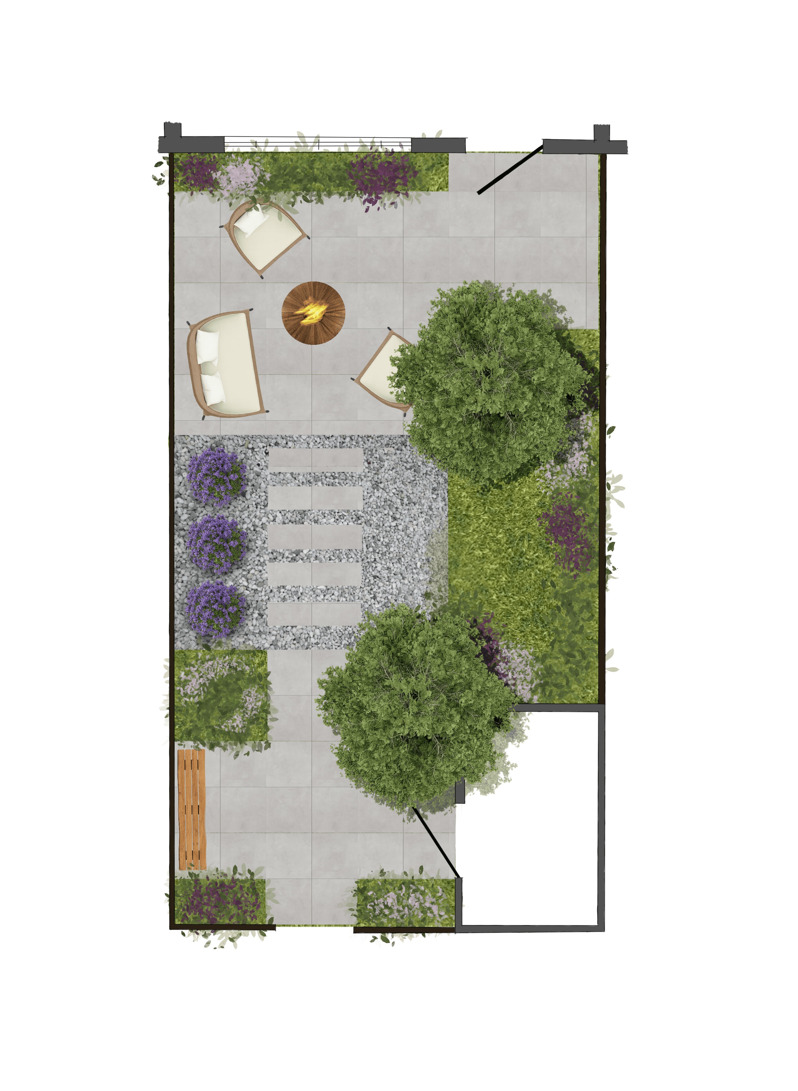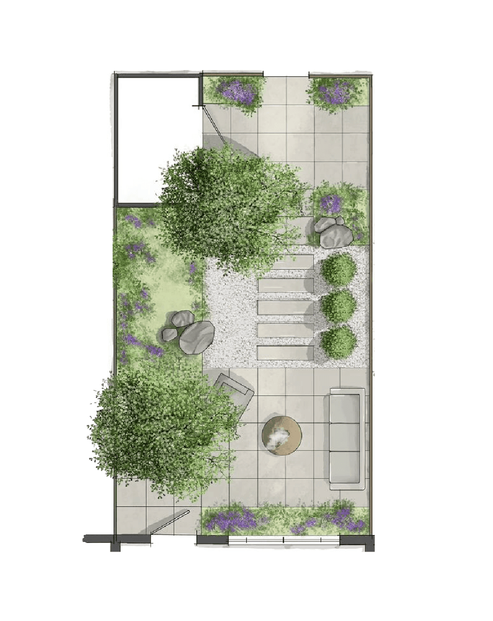 De tuin verbindt de woning met buiten en bepaalt hoe je de seizoenen ervaart. Met een doordacht tuintekening ontstaat een logische indeling: zichtlijnen vanuit huis, plekken voor zon en schaduw en een routing die uitnodigt om de hele tuin te gebruiken. Terrassen, groen, paden en eventuele bijgebouwen worden als één geheel bedacht, zodat buiten echt voelt als een verlengde van het interieur.